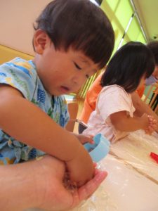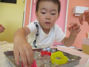感触を楽しんだり型にはめたりしてみんな楽しんでいました