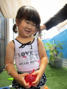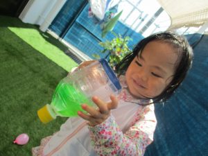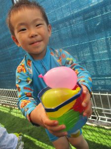 今週は手作り玩具や水風船などを使って水遊びを満喫しました