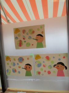 4月からみんなで楽しんできたシャボン玉を、クラス毎に様々な道具や素材を使って表現しました