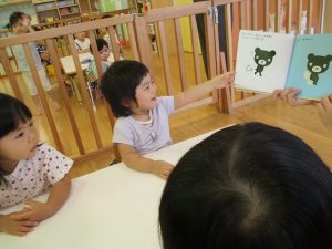 お休み中の話を早速保育士に聞かせてくれましたよ![]()