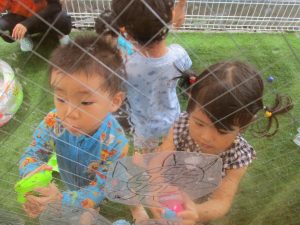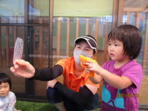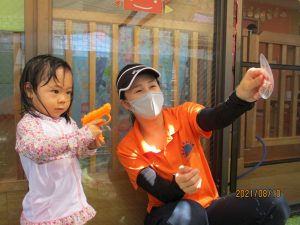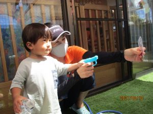 みんな水鉄砲の構えがサマになってきました![]()