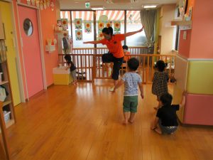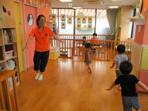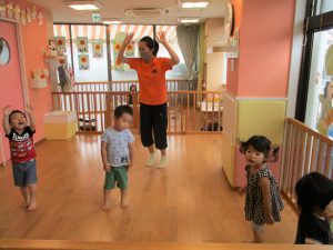 今伊勢園でも、水遊びはもちろんのこと、室内でもリトミックや体操で身体をしっかり動かす時間を設けていますよ![]()