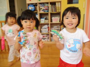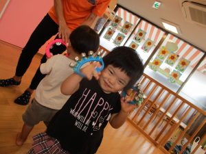 音楽に合わせて保育士や友だちとの触れ合いも楽しみました