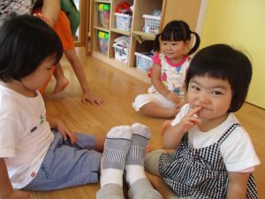 最初はグーと掛け声をすると、じゃんけんをするということがちゃんとわかっている様でパーを差し出すいちご組さん