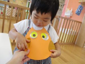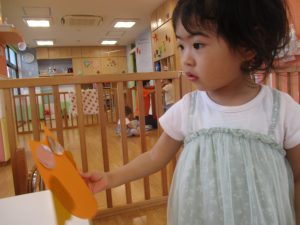 今週は1,2歳児さんは縦割り保育で普段のいちご組、りんご組とは違い、すいか組?・ぶどう組?で活動しました?