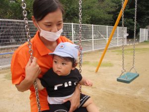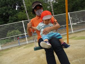 野見神社の公園ではもも組?さんは保育士と一緒に遊具を楽しみました![]()
