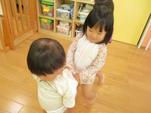 お兄さんお姉さんが遊んでいる様子をじっと眺めていたもも?組さん![]()