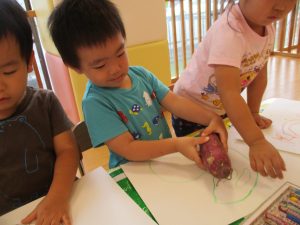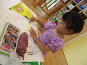 秋の収穫をして、さつまいもの絵本を見て、デッサンして、、、