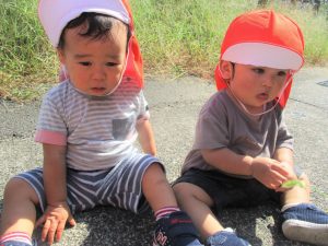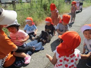 線路沿いに到着するといちご組やりんご組の子たちがもも組さんのお世話をしてくれました![]()