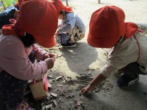 みんな真剣にどんぐり?や落ち葉?を拾い集めていましたよ