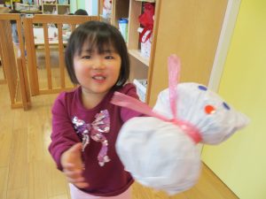 今週行った新聞紙遊びでは素敵なものが完成しましたよ?