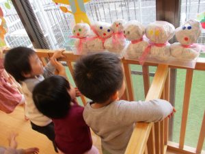 みんなが作ったものを横に並べると嬉しそうにしばらく見つめる子どもたちでした?