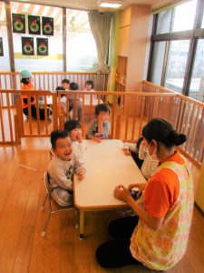 おやつを食べる時間になると自分で着席していましたよ![]()
