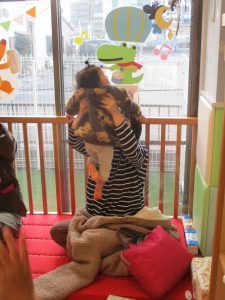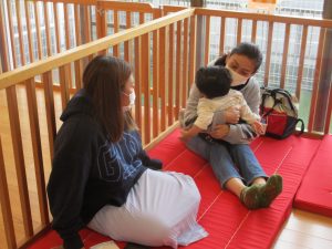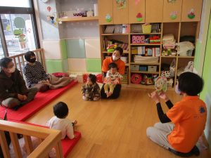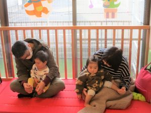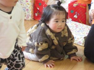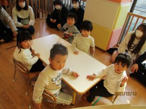 保護者の方が近くにいるいつもと違う環境に少し戸惑いを見せる子どもたち?
