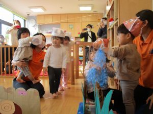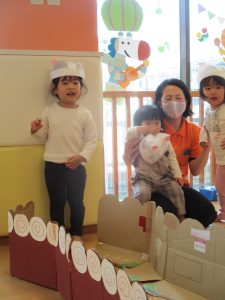 子どもたちが好きなガラガラどんの絵本を題材とし、これまでたくさん楽しんできた劇遊び?
