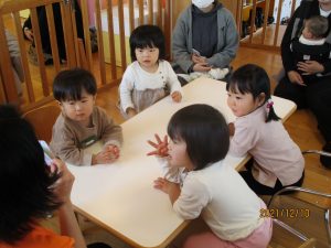 ♫まつぼっくり♫や♬おやさいがいっぱい♬などの歌に合わせてふれあい遊びを楽しみましたよ![]()
