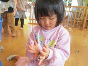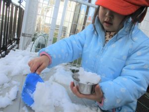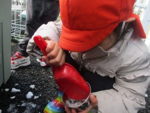 りんご組さんはカップに入れたりスコップですくったりして楽しんでいました![]()