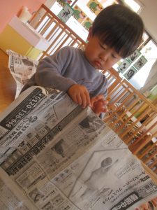 びりびりちぎったり新聞紙の上で“おやすみ~”![]()