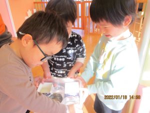 でも容器のふちに小さな氷を見つけたお友だちがいましたよ![]()