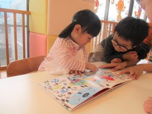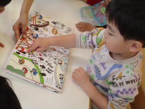 絵本を読む際は絵本の内容だけでなく「〇〇はどこにあるかな?」などとお子様にたくさんの問いかけをしてみてくださいね![]()