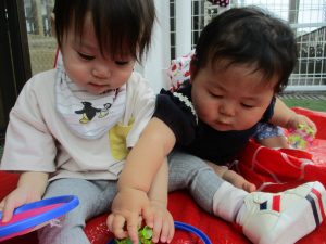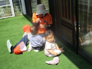 まだ園庭では人工芝の感触に戸惑う姿もありますが、天気が良い時は積極的に戸外に行きたいと思います![]()