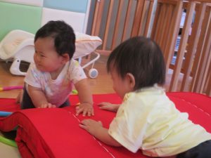 もも組さんはマット遊びで身体を動かして楽しみました![]()