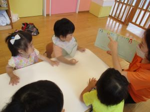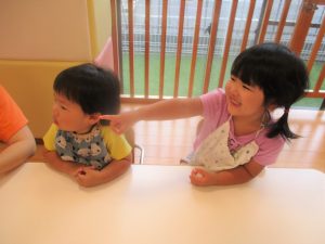 思わず歌ってしまう子どもたちの様子を、今伊勢園の子どもたちもジーッと見つめていましたよ![]()