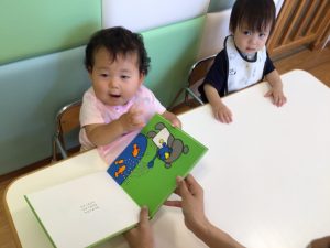 こぐまちゃんシリーズは原色で描かれており、月齢の低い子どもたちにも分かりやすく人気です![]()