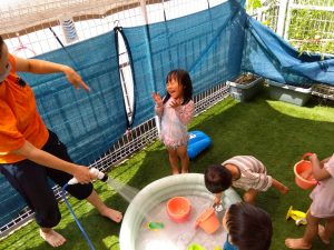 久々の水遊びに大盛り上がりの子どもたちでした![]()