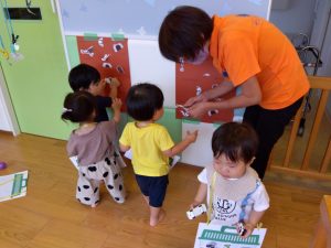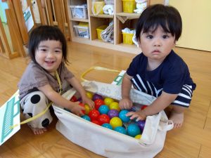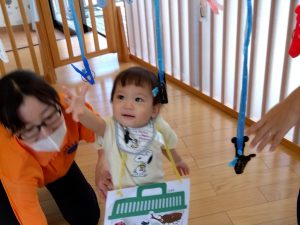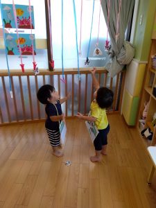 0歳児さんも一生懸命手をのばして・・![]()