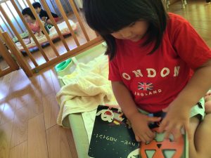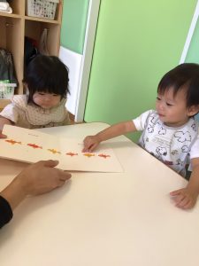 思わず見入ったり、触れたりすることを楽しんでいた0歳児さんでした![]()