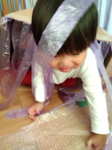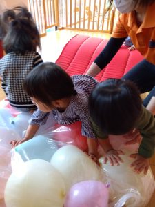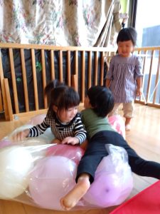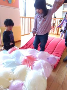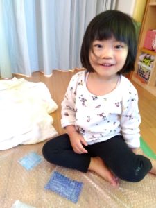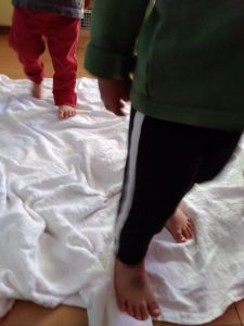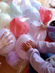 冷たい感触やプチプチの上を歩いたりしていましたよ![]()
