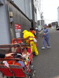 仮装行列を楽しんで保育園へ戻ると、仮装した園長先生が待っていましたよ