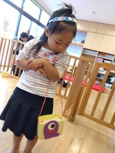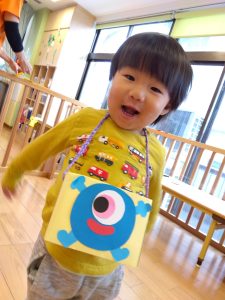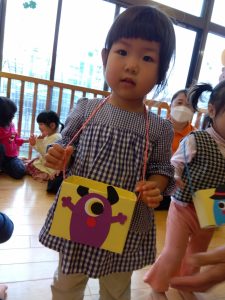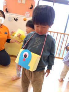 ハロウィン会では、お菓子を入れるためのカバンを作りましたよ
