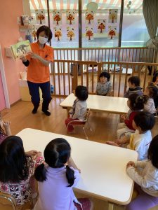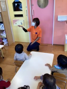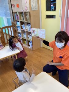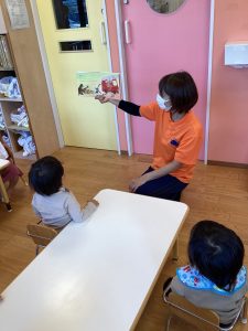 「ひとのものをとっちゃダメだよ」と子どもたち![]()