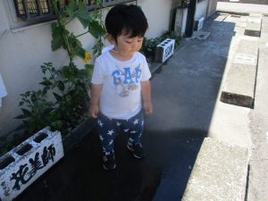 水たまりを見つけてバシャバシャ楽しんでいましたね![]()