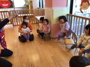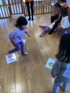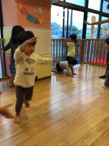 英語のカリキュラムではCDに合わせて歌ったり身体を動かしたりしています![]()