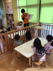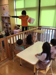 なかなかにらめっこをしてくれないだるまさんがなんとも面白く、子どもたちも「クスッ」と笑ったり、「なんでー」とツッコミを入れたり、だるまさんのマネをして楽しんでいましたよ![]()