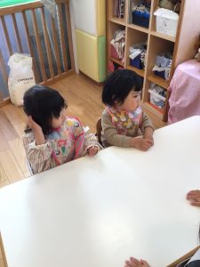 元気に戸外で遊ぶ子どもたちは暑い暑いと言って、戸外から帰ってきた後はたっぷりと水分補給をして体温調節をしています