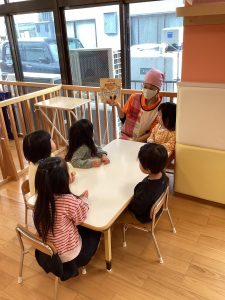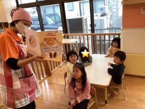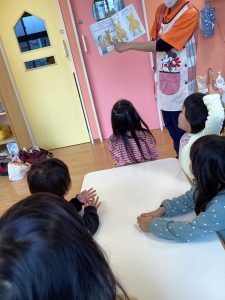 今週の読み聞かせプログラムでは、りんご組の月刊絵本、「あわあわ、ふわふわ、くまのたんくん」をご紹介します