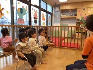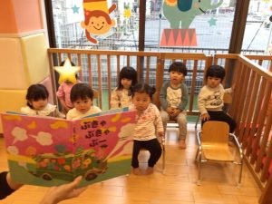 新学期が始まり、新入園児さんも涙することが少なくなり、絵本の読み聞かせの時間も椅子に座って落ち着いて聞いてくれていますよ![]()