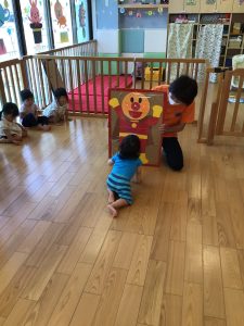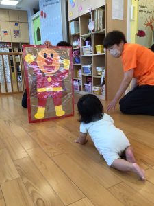 もも組さんのお友だちもハイハイでアンパンマンにタッチ