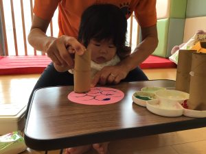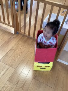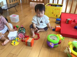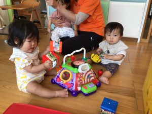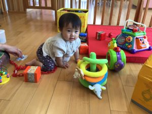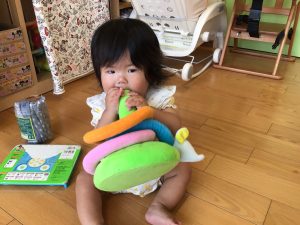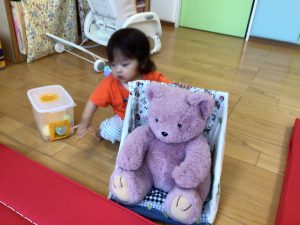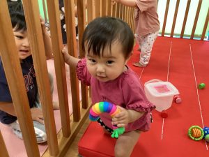 一番月齢の高いお友だちはひとり立ちがしっかりしてきてくまさんとお散歩かな![]()