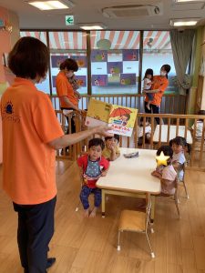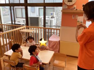 子どもたちも「あめ、あめ」「ぽったん」と上手に真似していますよ![]()