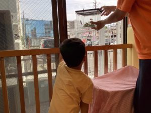 蝶々の羽も開いてパタパタするようになったので、蝶々を外に逃してあげました![]()