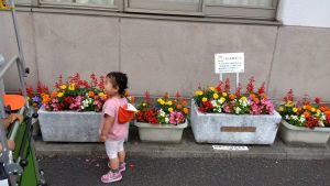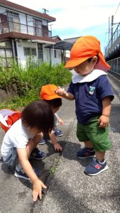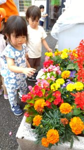 きれいな花にうっとりの子どもたち![]()