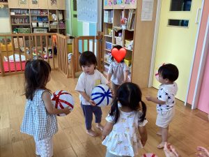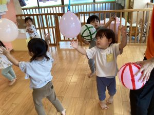 弾ませたり投げたりしながら楽しんでいましたよ![]()