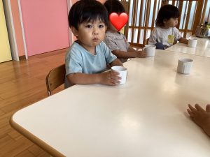 そんな中、雨が続き、りんご組さんがてるてる坊主を作ってくれましたよ![]()