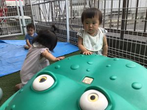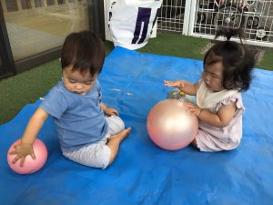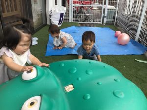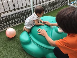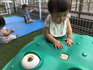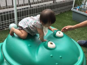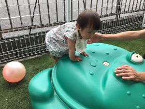 どんどん活発になってきた、0歳児さんのこんなパワフルな姿もありましたよ![]()