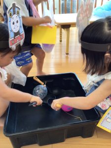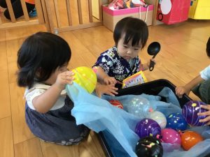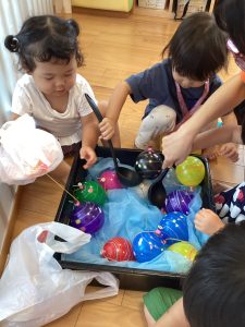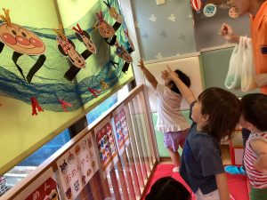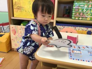 保育園の夏祭りでは風鈴やうちわ、ちょうちんなど昔ながらの夏の風物詩に触れたり、おめん、ヨーヨー、かき氷など日本の夏ならではの伝統的な夏の行事を体験しました😄